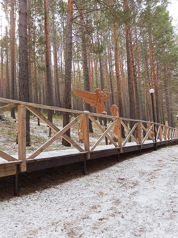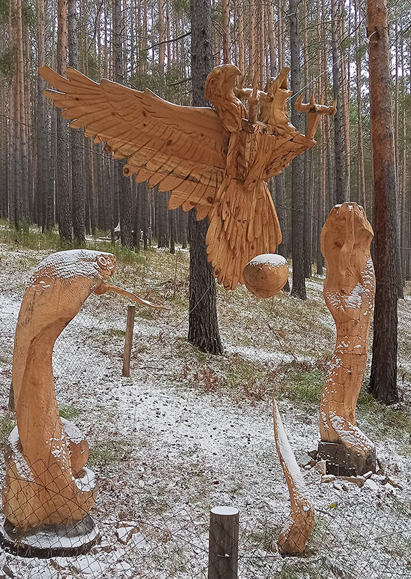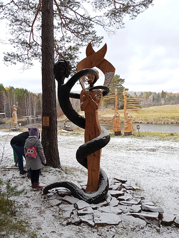 12 октября 2025 г. сотрудники Института-члены профсоюза с детьми и внуками (10 взрослых и 5 детей до 9 лет) вновь посетили парк деревянных скульптур «Лукоморье» на окраине поселка Савватеевка. Это замечательное место для прогулок с чистым воздухом и речкой. Главная особенность парка – международный фестиваль деревянных скульптур, который проходит здесь каждый год. Во время фестиваля скульпторы вырезают из дерева красивые фигуры, которые затем остаются в парке навсегда, красиво вписываясь в естественную среду. С нашего прошлого посещения в 2023 г. появилось несколько новых скульптур, часть дорожек накрыли настилом из досок для удобства передвижения маломобильных посетителей. Все посетители-сифибровцы, кто захотел и смог поехать в поездку в этот заснеженный воскресный день, остались довольны.
