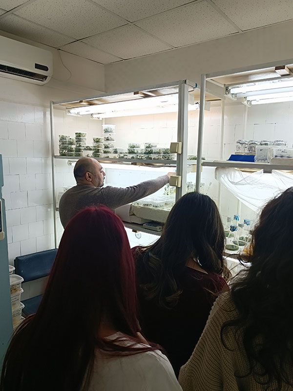 В завершение визита студенты посетили станцию искусственного климата Фитотрон, где имели возможность увидеть ростовые, проходные и испытательные камеры, используемые для выращивания и температурной обработки растений, и посмотреть, как в контролируемых условиях растут такие модельные растения, как табак и арабидопсис, и как проходят адаптацию оздоровленные растения земляники, помещенные из стерильных условий в почву.