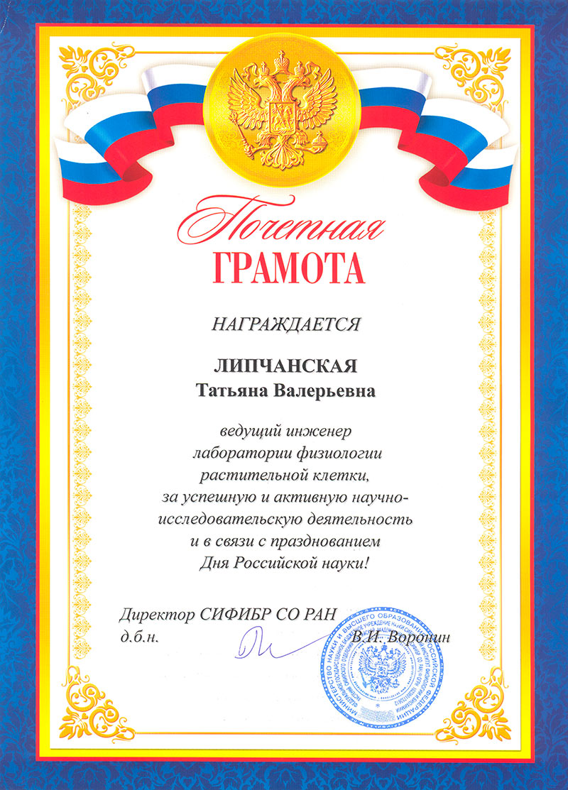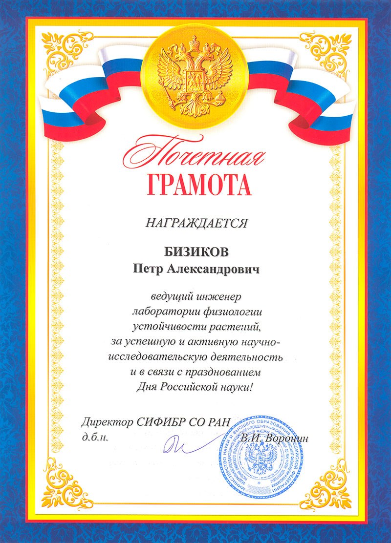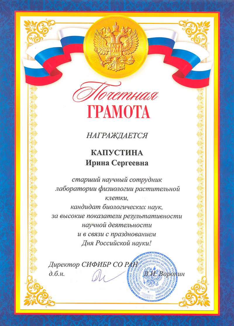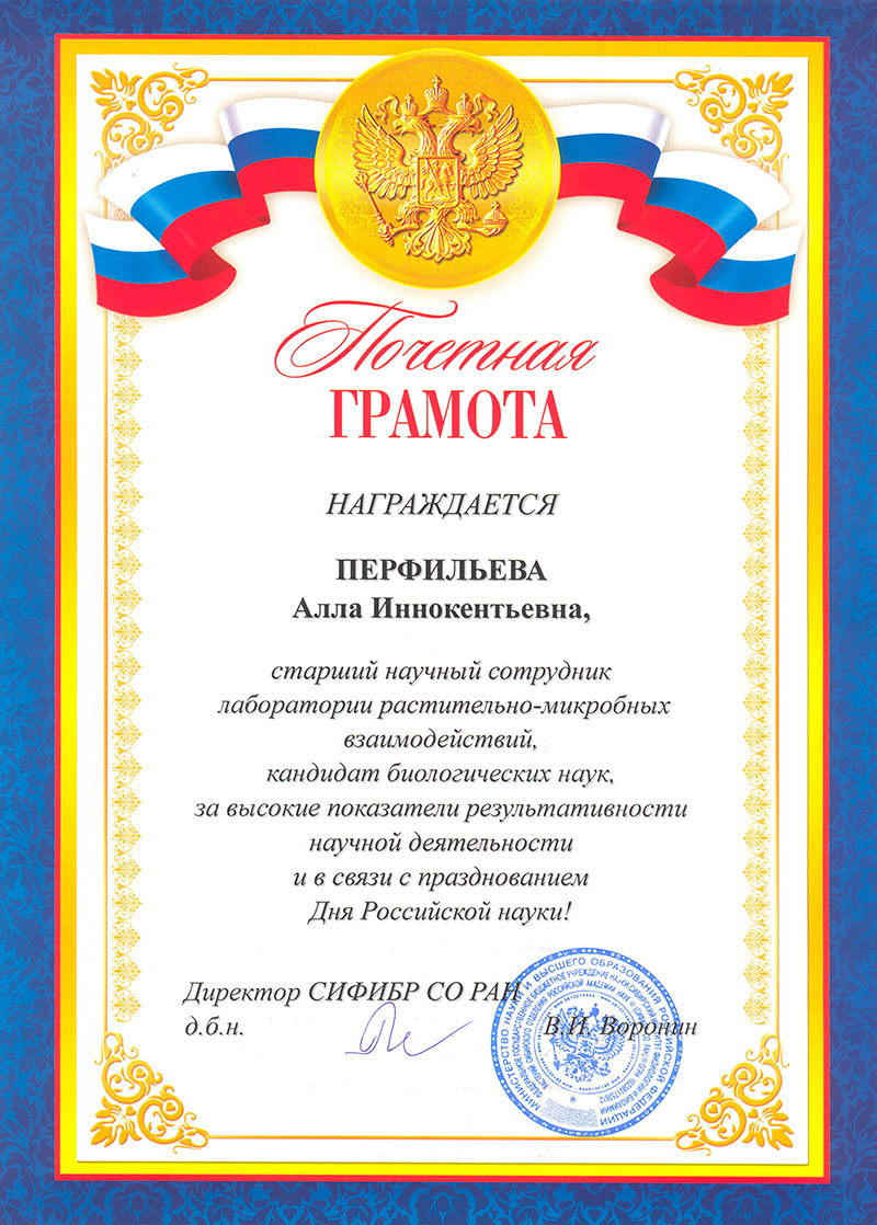 На торжественном Ученом совете, посвященном празднованию Дня Российской науки, молодые ученые были награждены Почетными грамотами администрации СИФИБР СО РАН за активную научно-исследовательскую деятельность и за высокие показатели результативности научной деятельности.